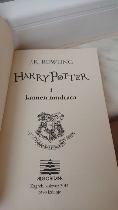Harry Potter i Kamen mudraca, J. K. Rowling, meki uvez, prvo izdanje, 2014.g., izdavač Algoritam, prijevod: Zlatko Crnković.