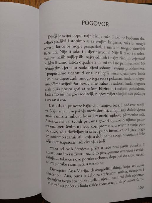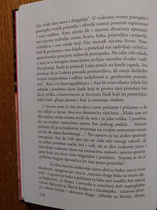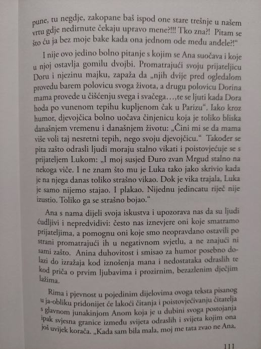 Lako čitljive crtice iz života za djecu mlađe školske dobi. Djevojčica Ana-Marija je destogodišnjakinja puna želja i pitanja za traženjem smisla i upijanjem svega što joj se nudi. Pomoću nje kao glavnog lika upoznajemo njezine roditelje, prijatelje i sve ostale koji čine mozaik njezina života. Koji puta ih promatra crno bijelo, a ponekad nas zadivljuje zrelošću i sposobnošću procjene njihovih postupaka. Knjiga sadrži četrdeset kratkih priča, od kojih svaka nosi jasnu poruku, koja će nekome doprijeti do srca, a nekome možda i neće.