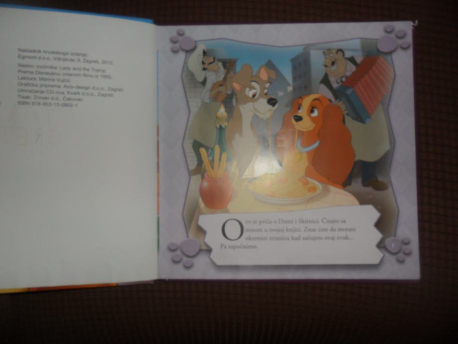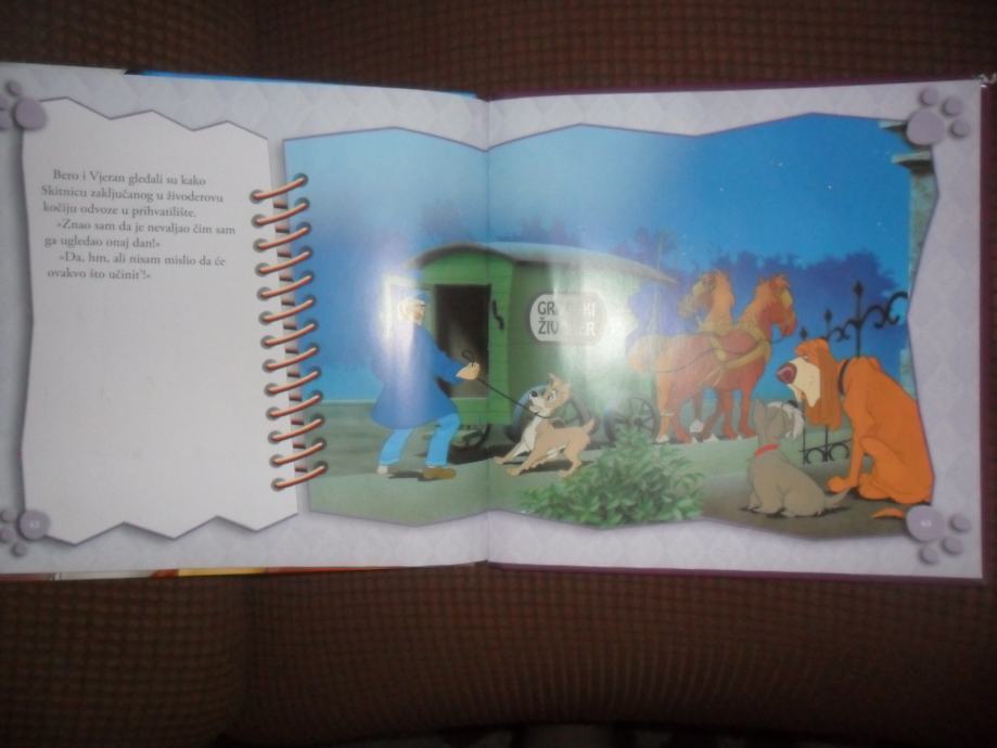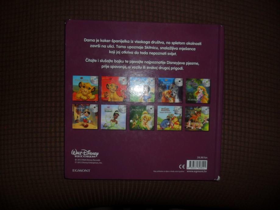 Prodajem poznatu dječju knjigu "Dama i skitnica", bez CD-a, tvrdi uvez, dimenzije knjige 23X23 cm, 49 stranica, jako dobro očuvana, povoljno