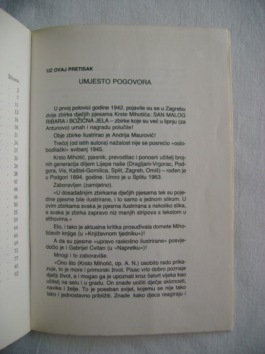 Krsto Mihotić - San malog ribara - REPRINT knjige iz 1943. godine, izdavač Školske novine Zagreb, 13 x 20 cm, meki uvez, 95 stranica, ilustracije Andrije Maurovića.