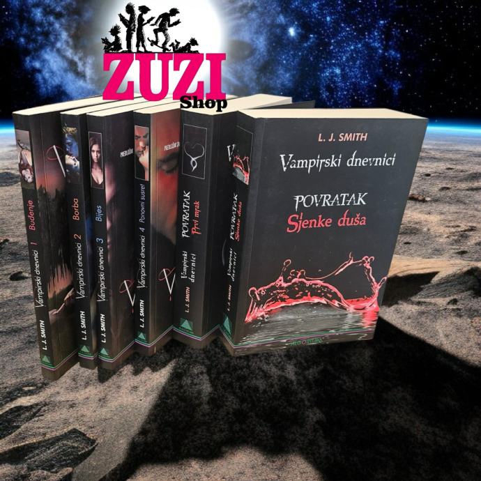 Duge plave kose nešto svjetlije od sunca i očiju plavih poput lapis lazulija, Elena GIlbert ledena je kraljica škole. Djevojke bi htjele biti poput nje, dečki bi htjeli biti s njom? svi osim novog učenika Stefana. Kada Stefan dođe u školu, Elena se ponada da bi upravo on mogao biti pravi, i zavjetuje se svojim najboljim prijateljicama Bonnie i Meredith da će ga po svaku cijenu osvojiti. Samo, ne očekuje da Stefan krije smrtonosnu tajnu iz prošlosti? a budući da je odrastao u renesansnoj Firenci, njegova prošlost traje već dugo, dugo, dugo? Romanom Buđenje, prvim iz serijala Vampirski dnevnici, započinje legendarni serijal američke spisateljice L. J. Smith. Napisani početkom devedesetih, Vampirski dnevnici danas stječu nov naraštaj poklonika zahvaljujući iznimnom uspjehu televizijske serije koju su nadahnuli. Srednja škola Roberta E. Leeja sasvim je obična srednja škola, a Elena Gilbert obična srednjoškolka. Dok ne upozna ljubav svog života Stefana Salvatorea koji je pametan, zgodan i sve što treba. Ali on je i vampir. I ima dijabolično zlog brata. Što bi više djevojka mogla poželjeti? Druga knjiga svjetski popularnog serijala Vampirski dnevnici spisateljice L. J. Smith nastavlja opasni ljubavni trokut između Damona, Elene i Stefana. Može li Elena saznati gdje je Stefan, koji je nestao na kraju prvog dijela? Smije li se on uopće vratiti u Fell*s Church, gdje svi sumnjaju da je upravo on odgovoran za smrtonosne napade? A kada netko ukrade Elenin dnevnik, u koji ona piše svoje najmračnije tajne, stvari se dodatno kompliciraju. Elena shvaća da su na kocki ozbiljnije stvari nego što je ona ikada zamišljala. Elena se promijenila. Nekadašnja zlatna djevojka i kraljica škole pretvorila se u ono što je priželjkivala. Želja za krvlju je nesnosna i iako jedva uspijeva držati pod kontrolom svoje porive, barem je Damon uz nju. Damon je napokon uspio u svom naumu i pridobio je Elenu pod svoj utjecaj. No je li želja za osvetom Stefanu jača od slatkog okusa pobjede?Elena se probudila iz mrtvih kako bi se snažan vampirski trio ponovno ujedinio. Nakon što ga Elena pozove, Stefan će održati obećanje koje joj je dao i upustit će se u borbu s najvećim zlom koje je ikada upoznao. Damon će se pridružiti bratu kojeg je nekoć smatrao neprijateljem i hrabro se upustiti u borbu krajnje neizvjesna ishoda s novom snagom i sa starim šarmom. L. J. Smith autorica je nekoliko uspješnih serijala za mladu publiku, a Vampirske dnevnike napisala je još početkom devedesetih. Nakon što su vampiri postali globalni fenomen, neodoljiv trio sastavljen od dvojice drevnih, prelijepih vampira i jedne srednjoškolke osvojio je srca obožavatelja, a tv-serija samo im je udahnula kultni status.Elena je zamalo zapečatila svoju sudbinu u zagrobnom životu žrtvujući se da spasi Stefana i Damona, ali moćna nadnaravna sila povukla ju je natrag. I ona sada više nije čovjek, a zbog vampirske aure Moći koja isijava iz nje sva vampirska srca u Fell’s Churchu kucaju brže. Stefan čini sve da bi je zaštitio od svih krvožednih stvorenja, posebno od svog brata Damona. No Stefan iznenada mora otići iz Fell’s Churcha, a mnogi će to pokušati iskoristiti kako bi se približili Eleni. Naravno da je među njima i Damon. Ali Eleni prijeti zlo mnogo veće od Damona. Tamne sile okružuju grad, a meta je upravo ona, sa samo jednim od dvojice braće pokraj sebe.Sjenke duša Elena Gilbert ponovno se našla u središtu magije i opasnosti veće nego što je ikad mogla sanjati. I, ponovno, Stephana nema da joj pomogne. Elena će stoga biti primorana povjeriti svoj život Damonu, prekrasnom, no opasnom vampiru koji najviše od svega želi nju – kako njezino tijelo, tako i dušu. Stranica: 195+183+190+211+435+439Dimenzije: 14 x 20Jezik: ZagrebPismo: LatinicaStanje: Nova knjigaUvez: MekiGodina: 2012