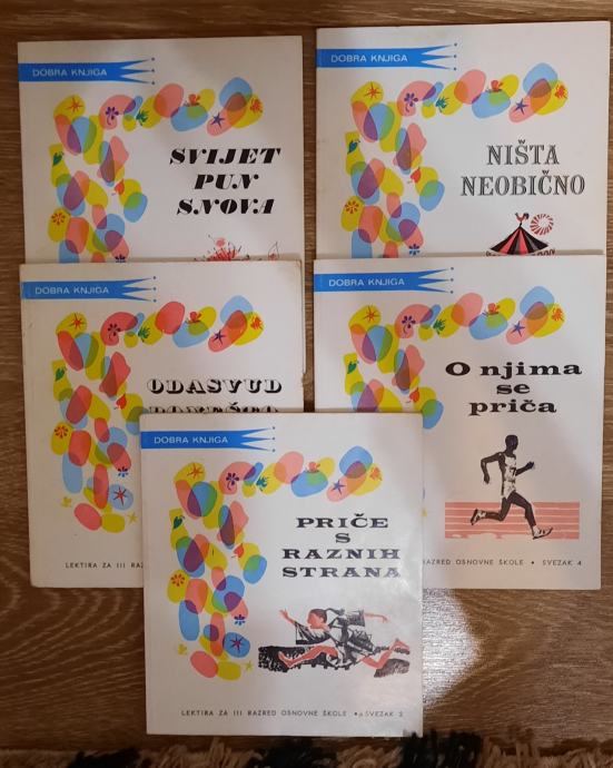 Imam ukupno 5 svezaka lektire za 3. razred Osnovne škole iz 1978. godine. Izdavač je Školska knjiga.