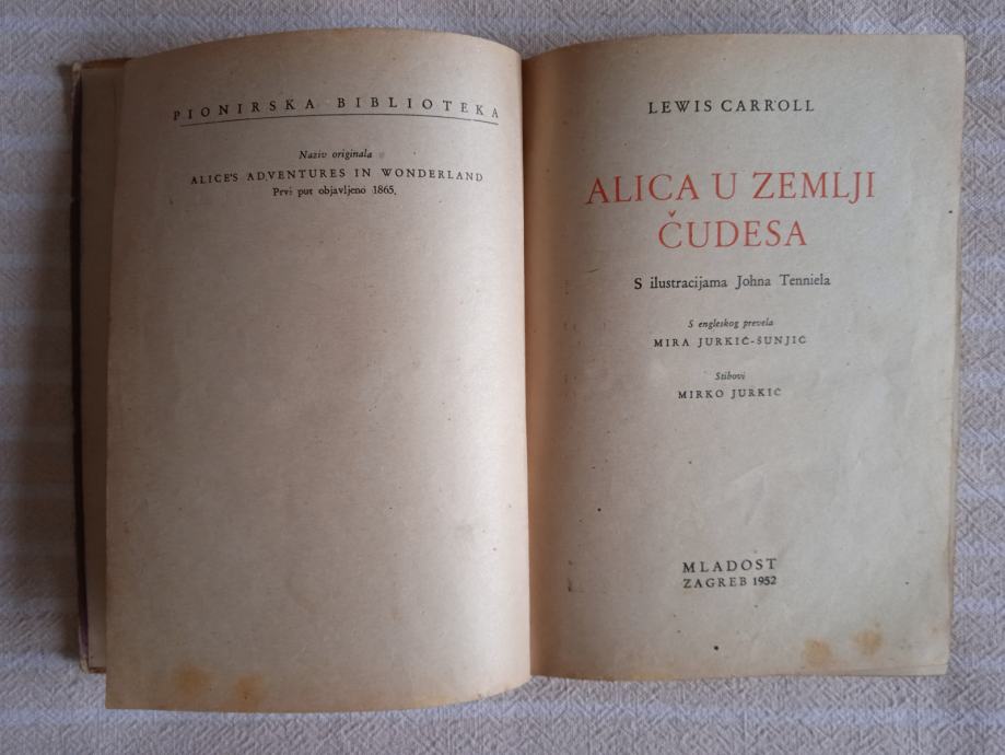 Lewis Carroll ALICA U ZEMLJI CUDESA ,Zagreb 1952 g.