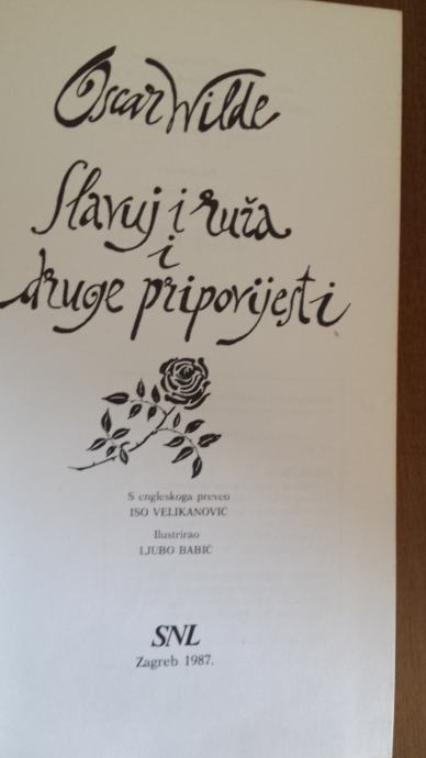 Oscar Wilde - Slavuj i ruža i druge pripovijesti - izdavač Sveučilišna na klada Liber Zagreb, 1987. godine, 12 x 21 cm, tvrdi uvez, 186 stranica, ilustrirao Ljubo Babić