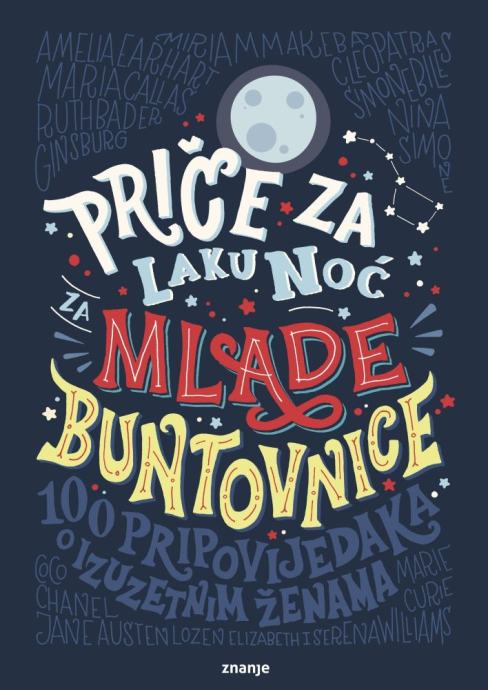 Priče za laku noć za mlade buntovnice maštovite su i inspirativne pripovijetke, napisane u stilu bajki, o 100 hrabrih žena – buntovnica – koje su svojim životima, sudbinama i postignućima promijenile tijek povijesti i nadahnule svijet. One su slikarice, znanstvenice, aktivistice, plesačice, astronautkinje, glazbenice, boksačice, spisateljice, političarke… iz svih krajeva svijeta. Svakoj je posvećena cijela stranica i portret koji savršeno odražava duh prikazane junakinje. Život mnogih od njih nije bio bajka, ali su svojom predanošću i hrabrošću savladale sve izazove i pokazale da ne postoje snovi koji se ne mogu ostvariti. Ovu raskošnu knjigu ilustriralo je čak 60 umjetnica iz svih krajeva svijeta, što je čini potpuno jedinstvenim projektom za djecu i mlade.