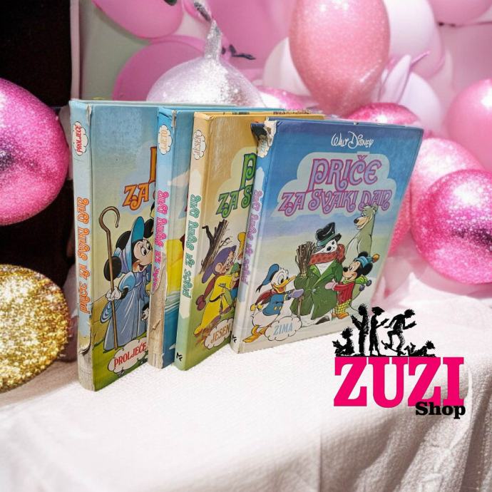 Komplet se sastoji od četiri knjige, svaka posvećena jednom godišnjem dobu: Proljeće, Ljeto, Jesen i Zima. Svaka od ovih knjiga sadrži priče o popularnim Disneyjevim likovima, s jednom pričom predviđenom za svaki dan u godini. Ove su knjige bile vrlo popularne u djetinjstvu mnogih generacija u regiji.Stranica: 159+159+159+159Dimenzije: 19 x 26Jezik: Ljubljana – ZagrebPismo: LatinicaStanje: DobroUvez: TvrdiGodina: 1990