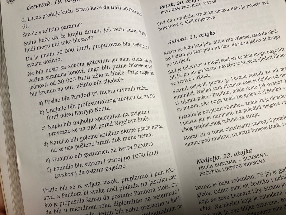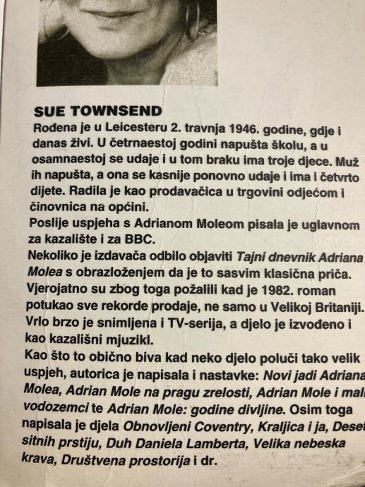 Tajni dnevnik Adriana Molea (13 3/4 god.) 7 fotografija je u oglasu. Cijena je 5 EUR za osobno preuzimanje u Popovači ili Ivanić Gradu. Troškovi slanja su dodatna 3,5 EUR Tiskom ili 5 EUR Poštom za unaprijed uplatu na račun ili 6 EUR za plaćanje pouzećem. Pakiram tako da je sigurno u transportu. Odgovaram na pozive, poruke putem Njuškala, SMS, Viber.