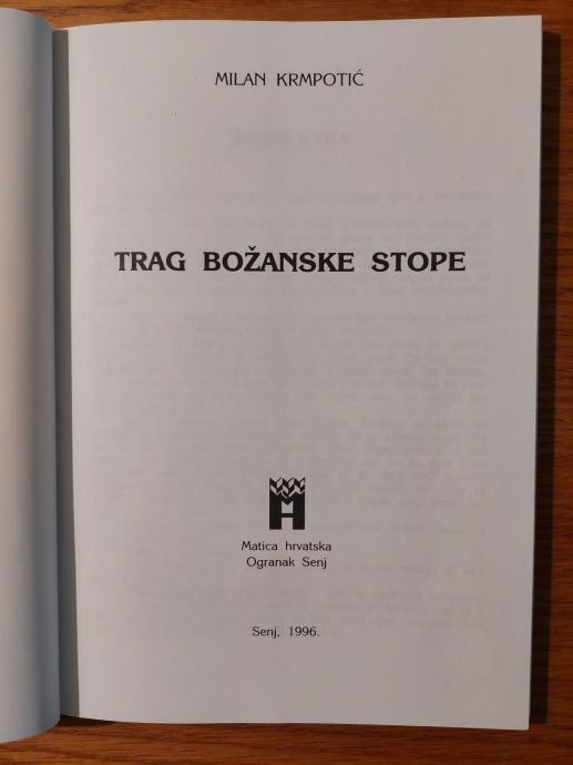 Trag BOŽANSKE stope - Milan KRMPOTIĆ / Urednik: Ivanka-Branka PRPIĆ