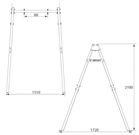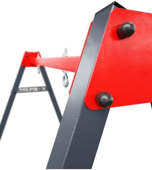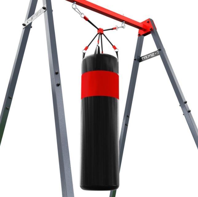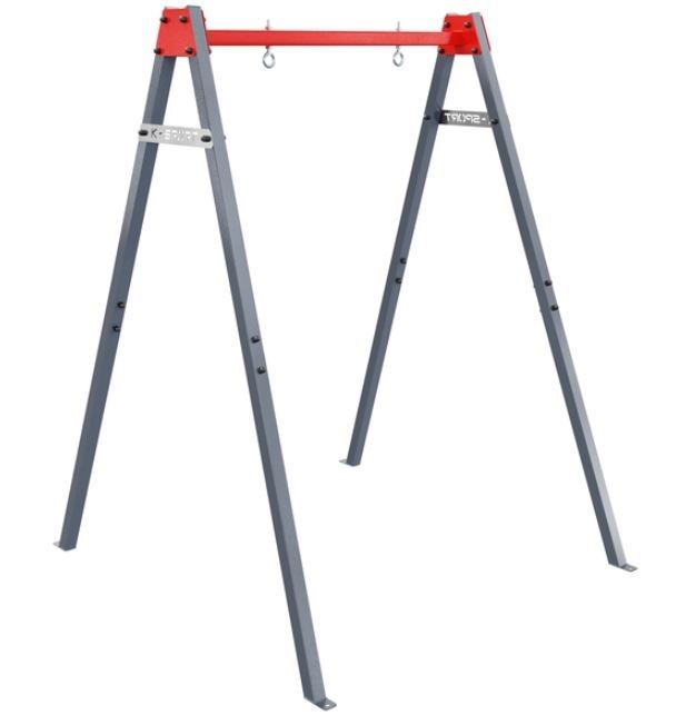 Novi višenamjenski čelični okvir koji se može koristiti za vješanje ljuljački, boksačkih vreća, visećih mreža ili trenažera za vježbanje i elastika. Noge uređaja moraju biti čvrsto fiksirane u cementu.Čelični profili debljine 50 mm i ojačanja dopuštaju do 250 kg težine.Svi vijci su pokriveni plastičnim čepovima.Na priložene 2 kuke možete objesiti različite vrste ljuljački ili boksačku vrećuProfil 50 x 50 x 2 mmTežina: 30 kgDimenzije: 151 x 172 x 210 cmMaks. nosivost: 200 kgPrašno lakiranIzrađen od kvalitetnog poljskog čelikaBoksačka vreća i ljuljačka nisu uključeni