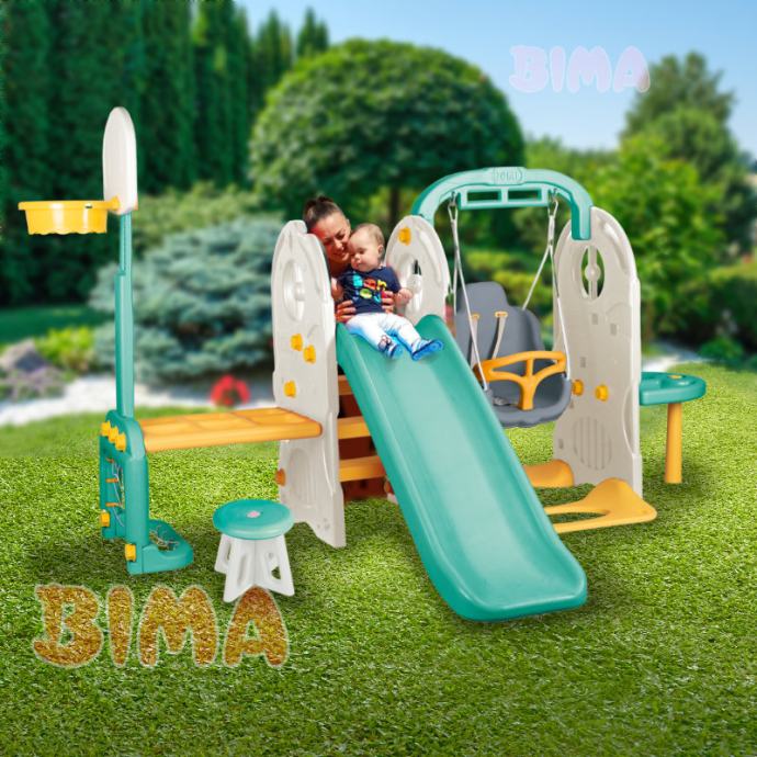 DJEČJA IGRAONICA SET 7 u 1 - TOBOGAN, LJULJAČKA, STOLIĆ, KOŠ i NOGOMET