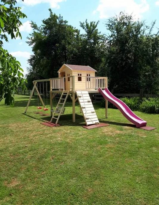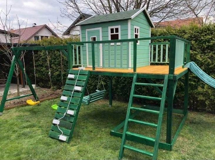 Kućica za djecu s toboganom, ljestvama i ljuljačkama
