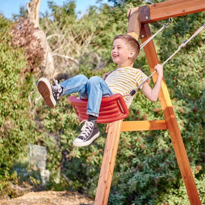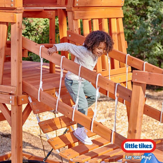 Dječje igralište za igru za djecu dolazi s okomitim penjanjem i ugrađenim drvenim ljestvama i penjačem za uže za sate beskrajne dječje zabave u dvorištu. Svaki set za igru Real Wood Adventures dolazi s ugrađenim sigurnosnim ogradama i rukohvatima kako bi se djeca mogla sigurno igrati.