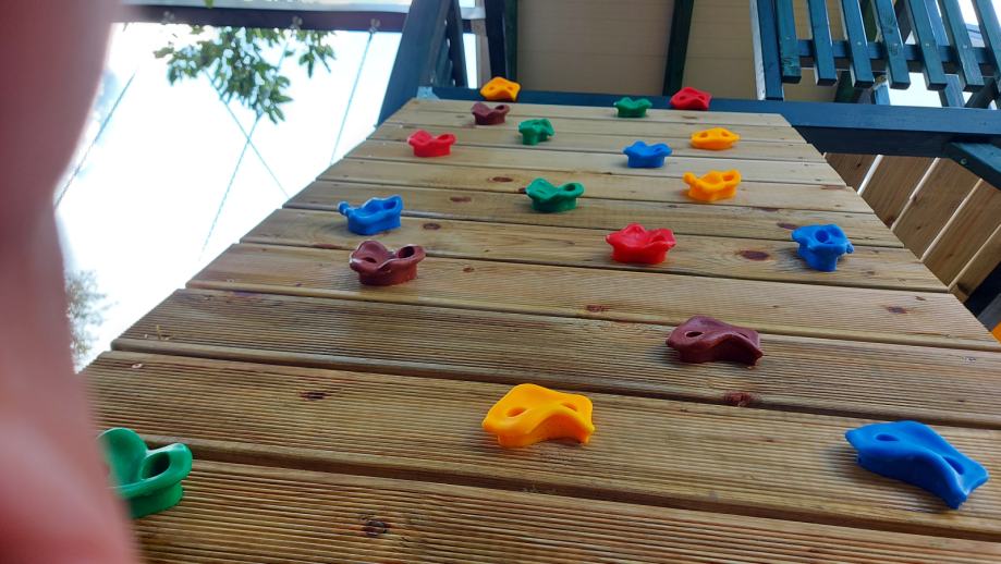 Na penjalicu je fiksirano umjetno kamenje - hvataljke za penjanje.