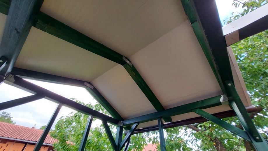 Svo drvo je premazano zaštitom od crvotočina i dva puta premazano bojom za drvo.