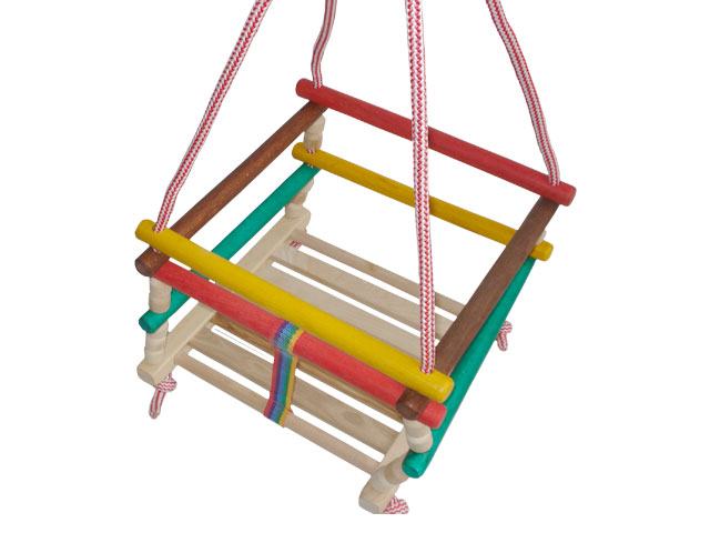 Ljuljačka je napravljena od kvalitetnih drvenih šipki. Šipke su međusobno povezane sigurnosnim remenom. Remen povezuje drvene letvice kako bi ih držao u položaju prilagođenom djeci. Šipke ne klize, a drvena konstrukcija ljuljačke je pomična.