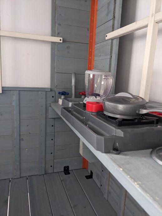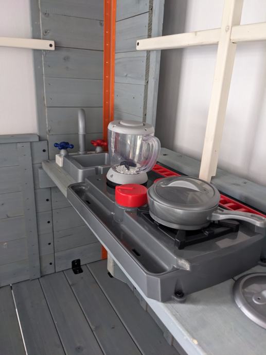 Unutar kućice nalazi se i mini kuhinjica sa sudoperom, pločom za kuhanje i blenderom koji radi na baterije.