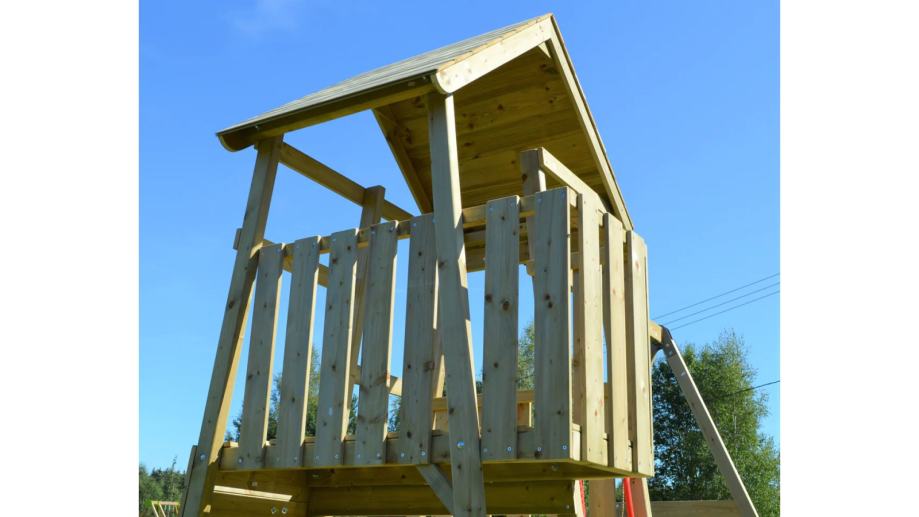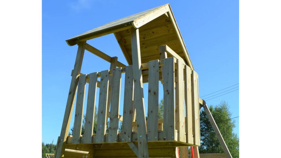 Aktivni toranj izrađen je od visokokvalitetnog impregniranog drva nordijske smreke/bora pod visokim tlakom. Sva korištena drvena građa dolazi iz FSC certificiranih šuma. Izdržljivo drvo otporno je na vremenske uvjete i vrlo je otporno na truljenje. Igralište zadovoljava europski standard EN-71.