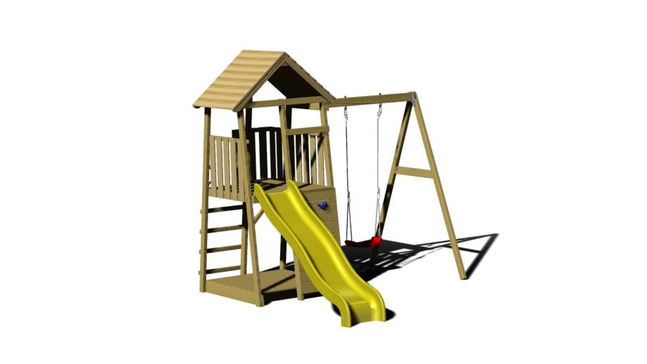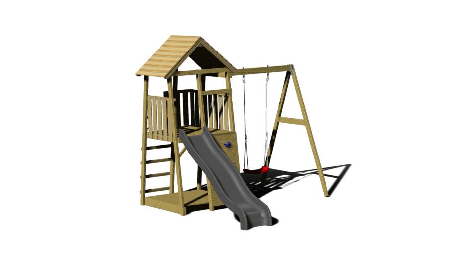 Ispod tornja nalazi se ugrađeni pješčanik s otvarajućim poklopcima koji se mogu zatvoriti nakon igre, osiguravajući da je pijesak suh i čist. Dodatnu zabavu i adrenalin pružit će ljuljačke s jednim sjedalom, koje su pričvršćene sa strane tornja.