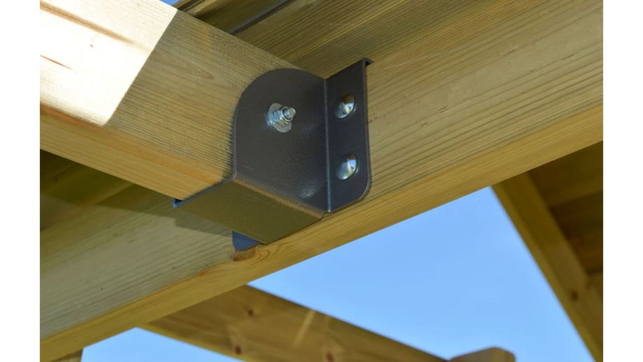 Sigurnost tornja osiguravaju grede debljine 44 x 69 mm. Osim stabilnosti igrališta, uključena su 4 komada željeznih sidara koja se ubacuju u tlo i pričvršćuju vijcima za drvene grede.