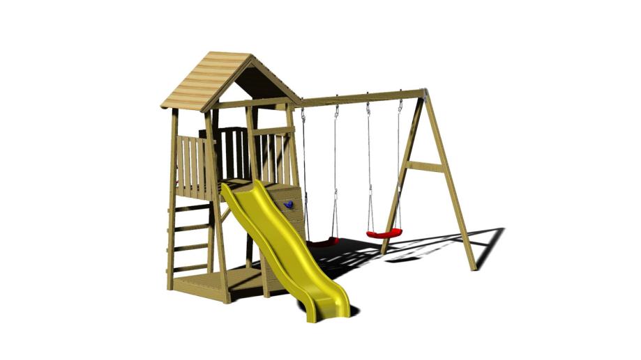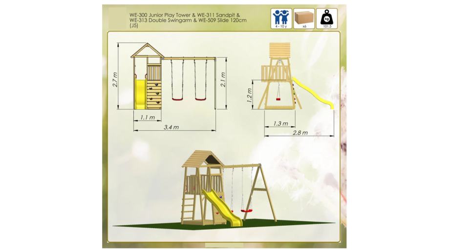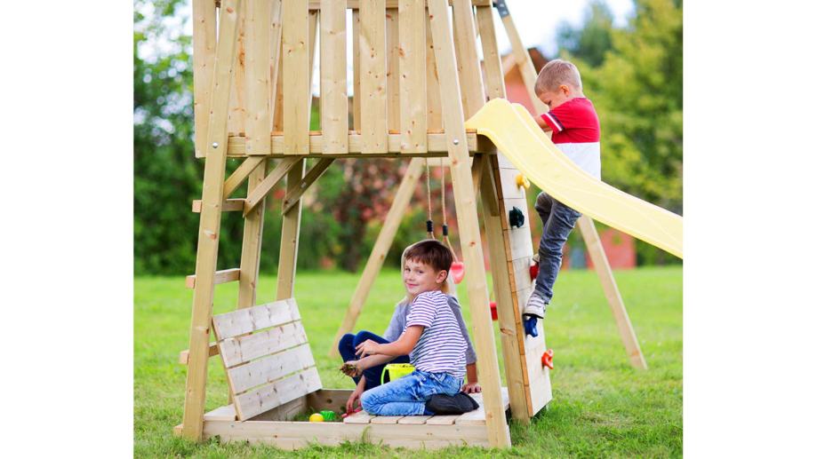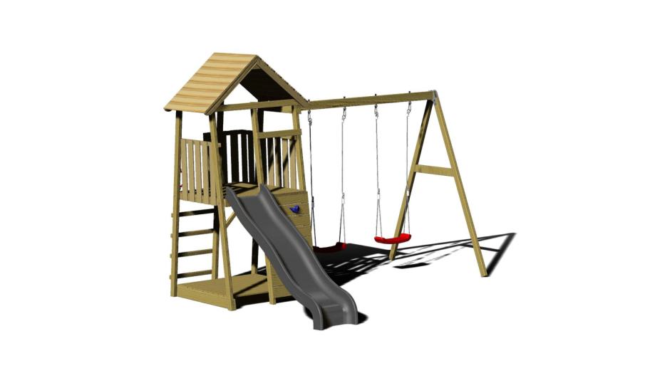 Ispod tornja nalazi se ugrađeni pješčanik s poklopcima koji se mogu zatvoriti nakon igre, osiguravajući da je pijesak suh i čist. Dodatnu zabavu i adrenalin pružit će dvostruke ljuljačke koje su pričvršćene sa strane tornja.