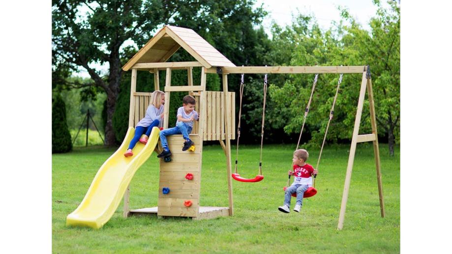 Junior serija kućnih igrališta s Play Towerom i mnogim dodacima namijenjena je mlađoj djeci od 4 do 10 godina. Play Tower ima platformu visoku 120 cm. Play Tower je igralište koje će obožavati cijela dječja ekipa! Očaravajuća kućica na stupovima s valovitim toboganom, zidom za penjanje i balkonom za skrivanje i igru pružit će vašoj djeci beskrajnu zabavu.