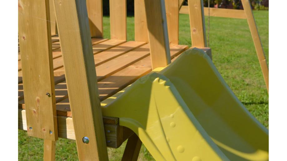 Igralište je izrađeno od visokokvalitetnog impregniranog drva nordijske smreke/bora pod visokim tlakom. Sva korištena drvena građa dolazi iz FSC certificiranih šuma. Izdržljivo drvo je otporno na vremenske uvjete i vrlo otporno na truljenje. Igralište zadovoljava europski standard EN-71.