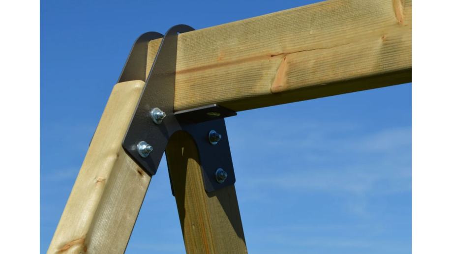 Sigurnost tornja osiguravaju grede debljine 44 x 69 mm. Osim stabilnosti igrališta, uključena su 4 komada željeznih sidara koja se ubacuju u tlo i pričvršćuju vijcima za drvene grede.