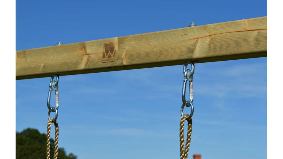 Sigurnost tornja osiguravaju grede debljine 44 x 69 mm. Osim stabilnosti igrališta, uključena su 4 komada željeznih sidara koja se ubacuju u tlo i pričvršćuju vijcima za drvene grede.