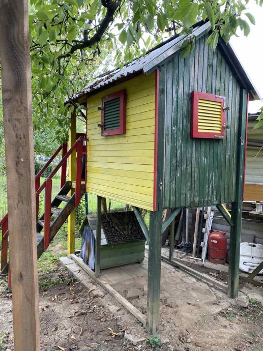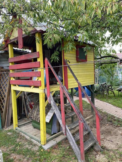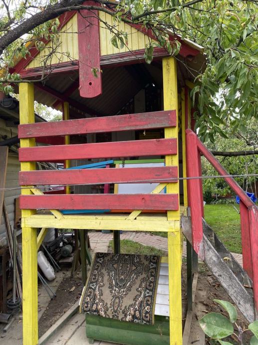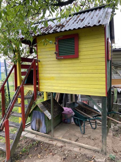Prodaje se drvena kućica za djecu dimenzija 1,35 x 2,2 x 2m.
