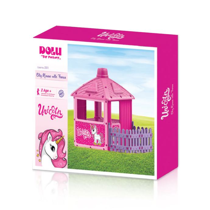 Kućica za djecu za igru s ogradom - City House jednorog 135x156x104 cm