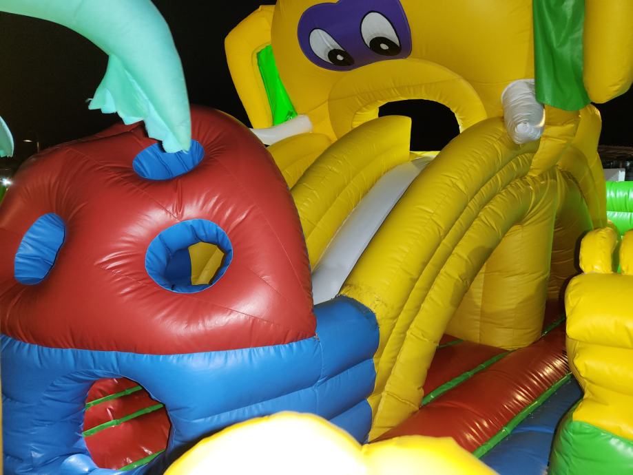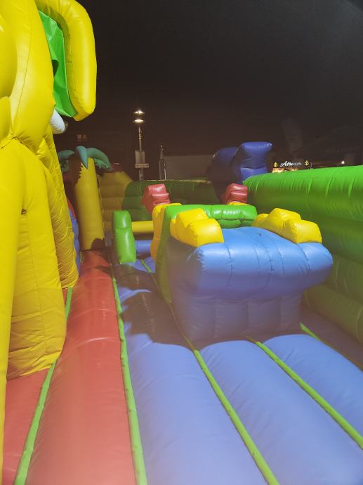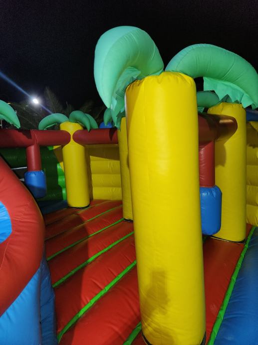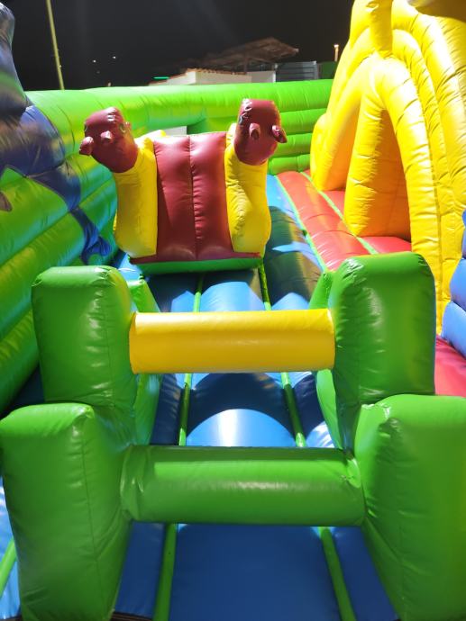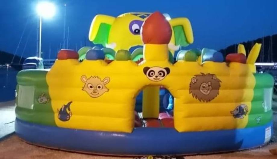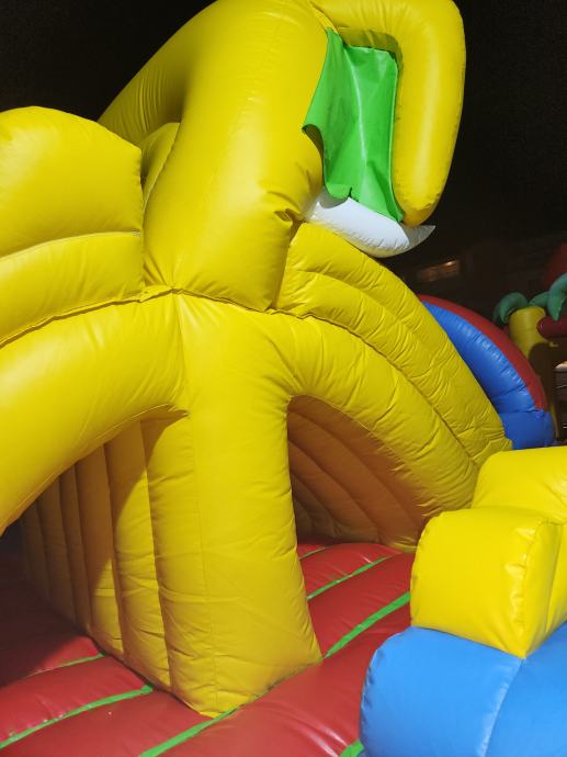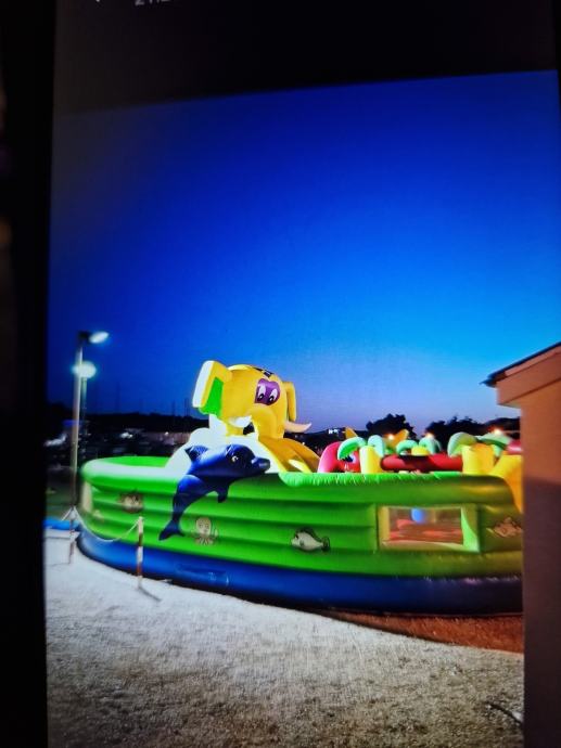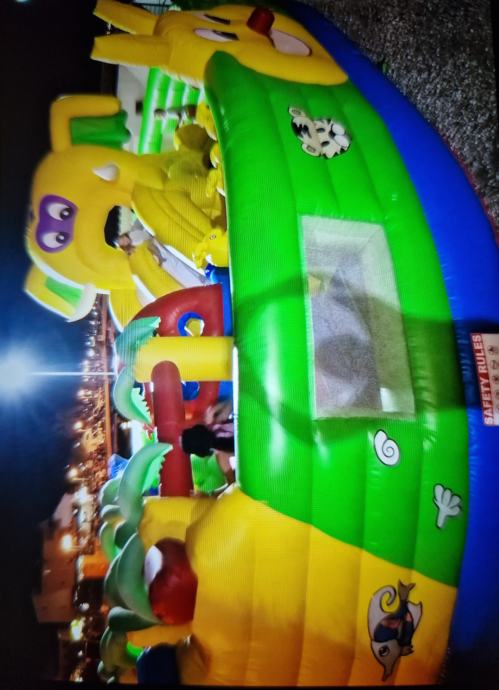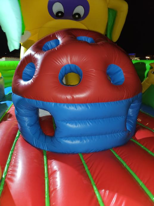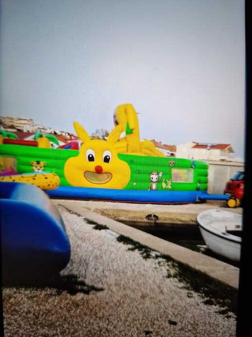 Napuhanac ima dva tobogana vreca za boks razne zanimacije za preskakivanje, životinjice itd jako dosta je bogat sa sadrzajima