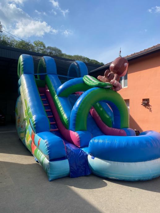 Veliki tropski vodeni napuhanac dimenzije 3.5m x 7m x 4.5 i igraonica zmajev dvorac dimenzije 5m x 3.5m x 4m.Može zamjena za neki manji auto,jet ski,skuter piaggio beverly 500,motocikl od 600 ccm na više.Zvati na 0981653821