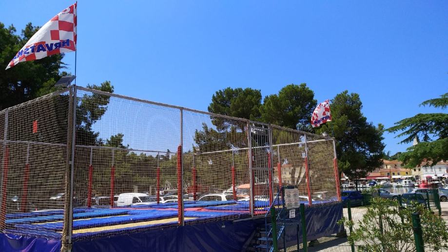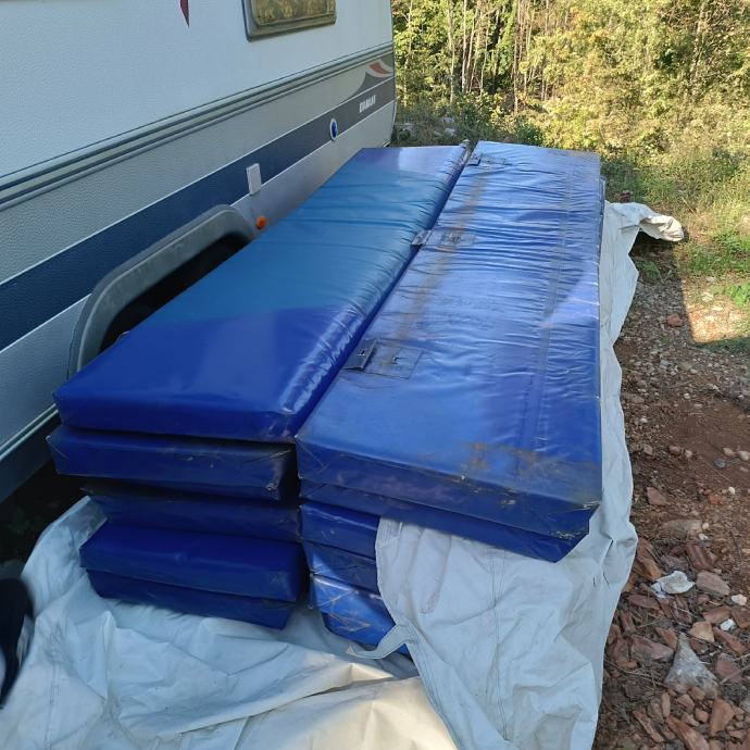 Trampolin-6 polja u dobrom stanju sa rasvjetom-4 kom rgb reflektora, željezna čvrsta konstrukcija,nije trulo, mreže i spužve nisu strgane,dostupan odmah, info 095 8449544