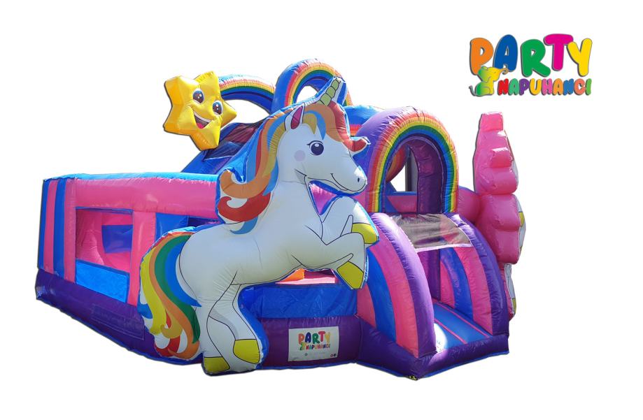 7. PARTY NAPUHANAC UNICORN (Jednorog) - prekrasan napuhanac u duginim bojama, tobogan, prostor za skakanje sa pregradama i stijena za penjanje - 80eur (Cijena za samopreuzimanje)