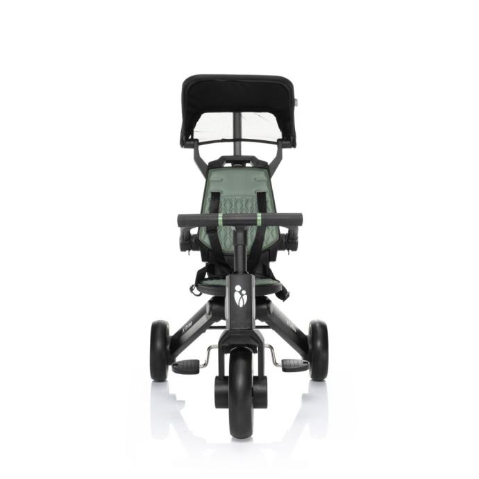 Tricikl je zabavna alternativa kolicima, a ujedno i prijelaz prema guralicama i klasičnim biciklima. S mogućnošću podešavanja visine vodilice i deaktivacijom upravljača, može u potpunosti zamijeniti kolica, pružajući djeci više zabave tijekom vožnje. Djeca mogu koristiti odvojive pedale kao pedale za samostalnu vožnju tricikla ili kao oslonac za manje noge. Podstavljeno sjedalo i naslon jamče udobniju vožnju, a naslon i sjedalo se jednostavno čiste jer su lako uklonjivi.