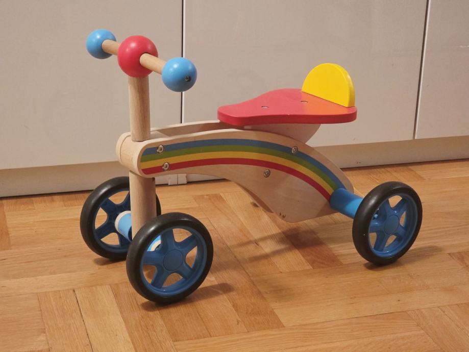 Prodajem rabljeni dječji tricikl guralicu sa 4 kotača, no bez nedostataka i tragova korištenja, idealan za najmlađe. Drvena konstrukcija s šarenim detaljima savršena je za razvoj motoričkih vještina. Sigurna i stabilna guralica omogućuje djeci bezbrižnu zabavu.