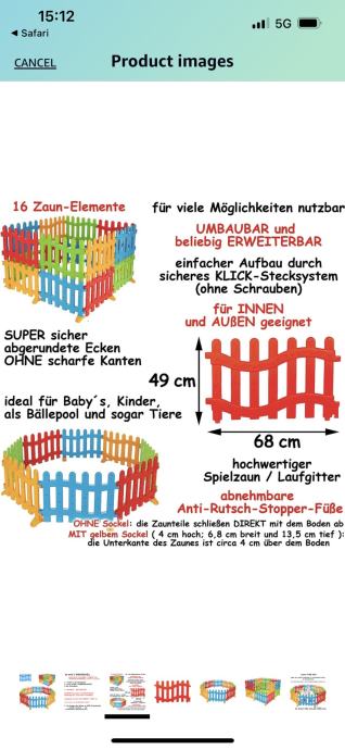 Visokokvalitetna ogradica za igru/igralište. Prikladno za unutarnju i vanjsku upotrebu. Idealno za bebe, djecu, kao bazen s lopticama pa čak i za životinje.
