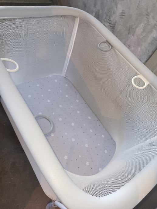 Nogice metalne i vrlo čvrste, stabilan, mrežica kroz koju dijete vidi van i vi vidite dijete, 4 ručke za koje se dijete može uhvatiti kako bi naučilo stajati.