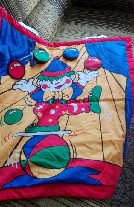 Kockastog je oblika s likom klauna sa nekoliko zvečkica.