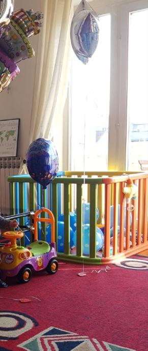 Vrtić za bebe sa širokim šipkama koje pomažu pri podizanju na noge. Zgodan je jer se može koristiti i vani, bez podloge - u pijesku, na travi i sl.