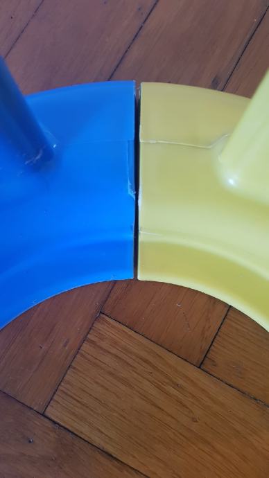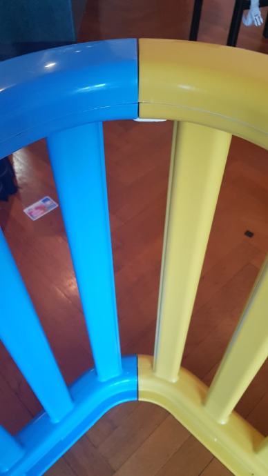 Kao nov, osim oštećenja na slici, koje je nastalo pri dostavi. Radi se o izbočenju na kojeg sjedne susjedna stranica pri sastavljanju (svaka stranica ima gornju kopču i donje izbočenje), međutim ovaj nedostatak ne smeta u sastavljanju jer su svi ostali elementi neoštećeni - kod nas je bio korišten i stajao čvrsto bez problema.