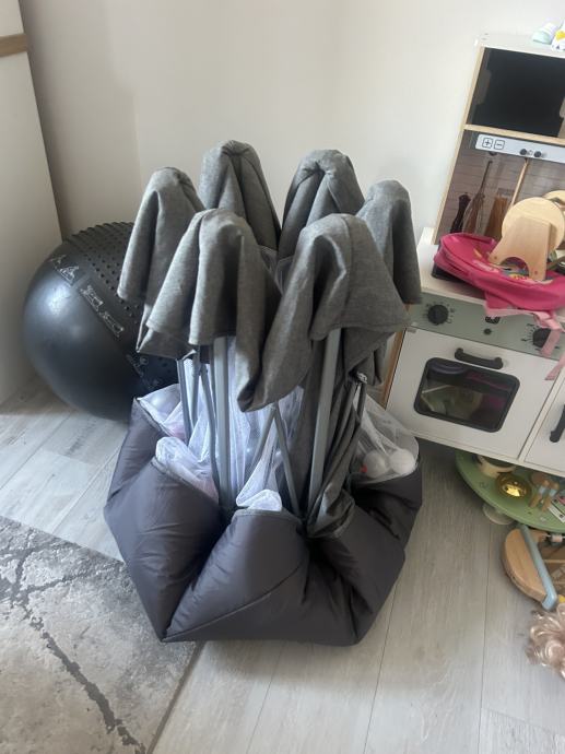 Korišten, mrlje od stajanja. Nisam skidala i prala navlaku sada. Poklanjam loptice uz to. Osobni prikup. 134 promjer, 75cm visina