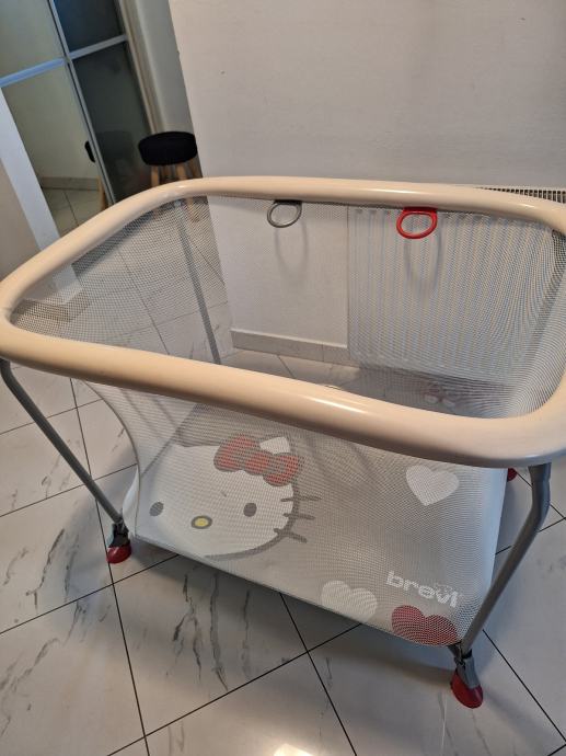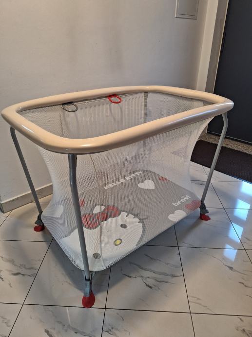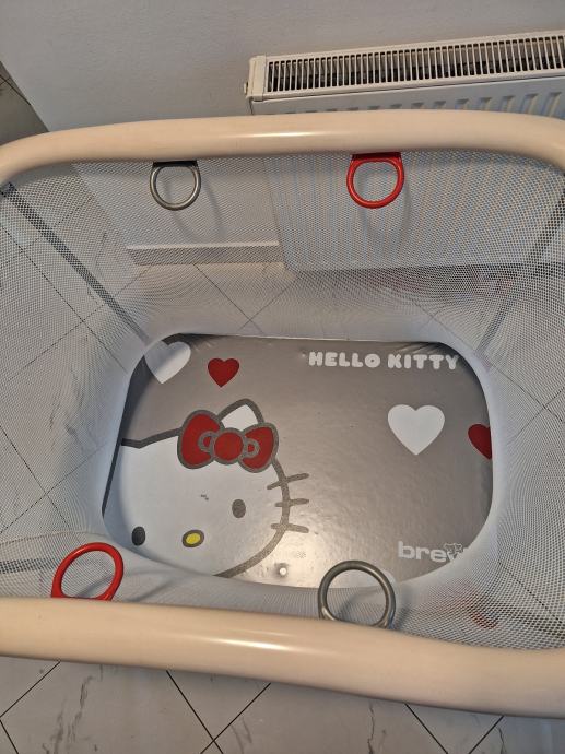 Stabilna metalna konstrukcija, mrežaste stranice za dobru vidljivost i ventilaciju. Podloga sa motivom Hello Kitty. Laka za sklapanje i prenos.