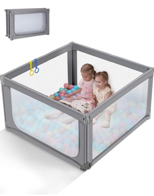 Vrtic dimenzija 125x130 cm, sklopiv, s mrežastim stranicama i vratascima na cif.