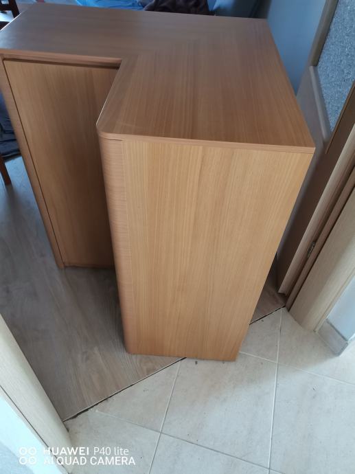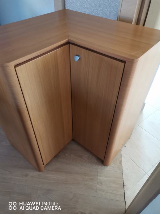 Prodajem očuvanu drvenu kutnu komodu. Dimenzije komode su na jednoj od slika. Ova komoda ima mogućnost postavljanja u bilo kojem kutku vašega doma, jer je u L izvedbi. Mogućnost dostave za Rijeku i okolicu. Lp