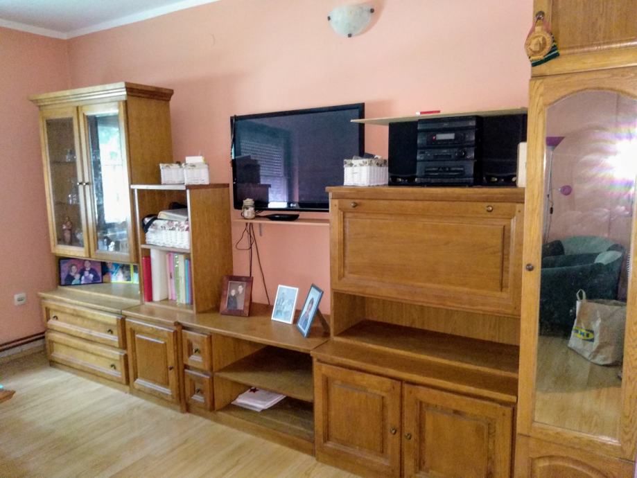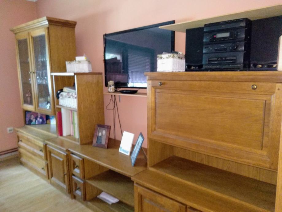 Prodajem očuvan hrastov namještaj (ormar) za dnevnu sobu. Sastoji se od svih dijelova na fotografijama. Ne saljem postom, ali moguce je organizirati prijevoz na području Slavonije i Baranje, uz nadoknadu.
