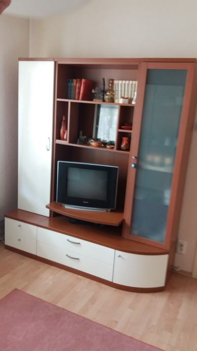 Prodajem komplet namještaj za dnevni boravak koji se sastoji se od regala širine 170 cm i visine 200 cm s prostorom za TV te trokrilnog ormara širine 130 cm i visine 200 cm (proizvođač Alples, model Diva).