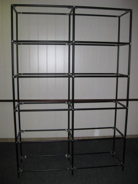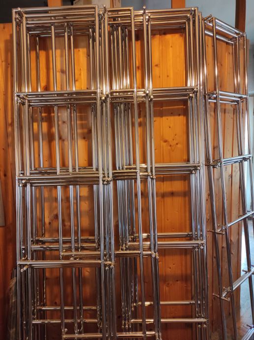 Stalaža od metalnih cijevi, crne mat i krom varijanta, promjer 19 mm.