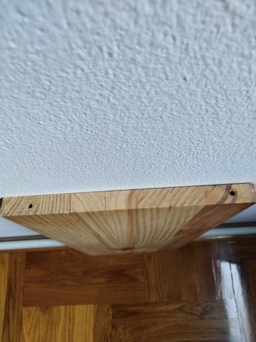 Drvene police nove, 4 komada za 20 eura. Dužina 56 cm, širina 25 cm, imaju probušene rupe sa strane pa se mogu lako ugraditi u okvir/nosač.