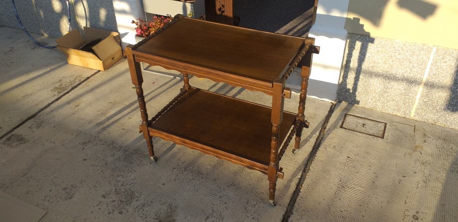 Prodajem stolić sa slike, u dobrom stanju, a kotačima koji se mogu jednostavno skinuti. Dimenzije stolića: širina 80cm, dubina 50cm, visina 70cm.